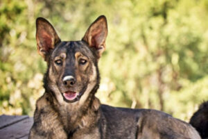Mauly was picked up by one of our volunteers from a Belgian Malinois rescue in the central valley in California in 2022. She is a “no-content” wolf-dog who thinks she’s a wolf. Our volunteer was told that she was 6 months old, but it was clear that she had already had pups. We aren’t quite sure of her age but she was very much still a puppy.